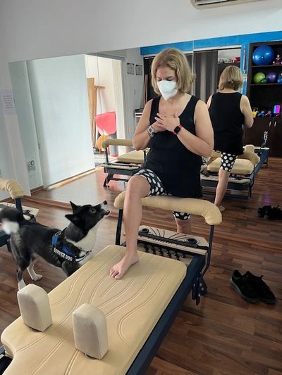 My name is Alexa. I am a purebred Siberian Husky. I am 18 months old. I weigh almost 15 kilograms. I was brought from a breeder in Holland at 4 months old. I live with my handler Marian, her husband, and my furry companions, Merlin and Dias. I am not a regular house dog or pet. I started training as an assistance dog at 5 months old. I have been trained as a ‘medical alert’ dog. I am here to assist my handler, who has epilepsy and has difficulty walking. She cannot be by herself. I have been trained through smell to recognise when she is about to have a seizure. I let her know by pressing my nose on her knee or shoulder. When she has a seizure, I let someone nearby know that my handler is in distress and needs urgent assistance.